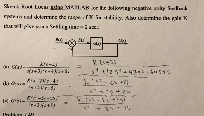 Solved Sketch Root Locus Using Matlab For The Following Chegg Com
